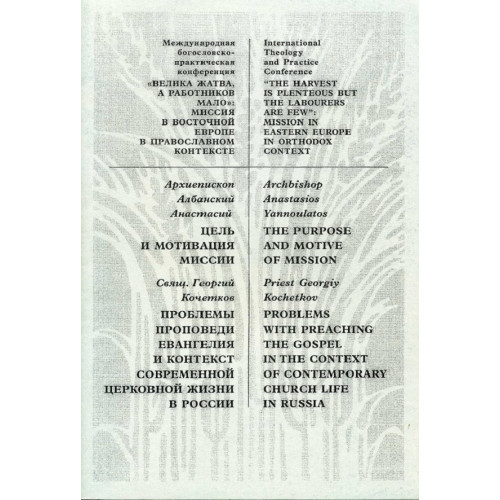 Архим. Анастасий. Цель и мотивация миссии. Свящ. Георгий Кочетков. Проблемы проповеди евангелия и контекст современной церковной жизни в России. М.: СФИ, 46 с.