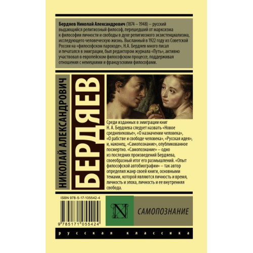 Среди изданных в эмиграции книг Н. А. Бердяева следует назвать «Новое средневековье», «О назначении человека», «О рабстве и свободе человека», «Русская идея», и, наконец, «Самопознание», опубликованное посмертно. «Самопознание» — одно из последних произведений Бердяева, своеобразный итог его размышлений. «Опыт философской автобиографии» — так автор определил жанр своей книги, основными темами которой являются личность и время, личность и эпоха, личность и ее внутренняя свобода.