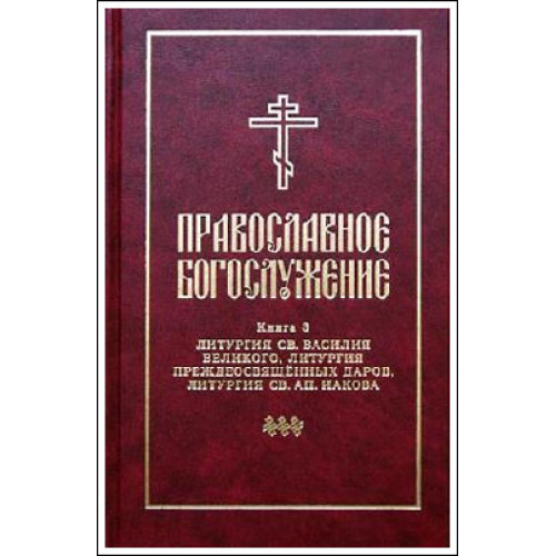 ПРАВОСЛАВНОЕ БОГОСЛУЖЕНИЕ: в пер. с греч. и церковнослав. яз. Кн.3: Литургия св. Василия Великого, Литургия преждеосвящённых даров, Литургия св. ап. Иакова. С прил. церковнослав. текстов. 2-е изд., испр. / Пер. свящ. Георгия Кочеткова, Б.А. Каячева, Н.В. Эппле; Сост. и предисл. свящ. Георгия Кочеткова. - М.: Свято-Филаретовский православно-христианский институт, 2010. - 272 с.