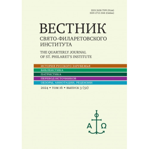 Вестник Свято-Филаретовского Института № 51. М.: СФИ, 2024. Т. 16. Вып. 3 (51). 300 с.